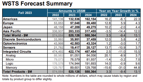 WSTS表示,2024年所有市场都有望增长,欧洲及日本市场将分别成长4,3%及4,4%,美洲市场将成长22 深夜在线电影,3%,亚太地区成长12%。 。