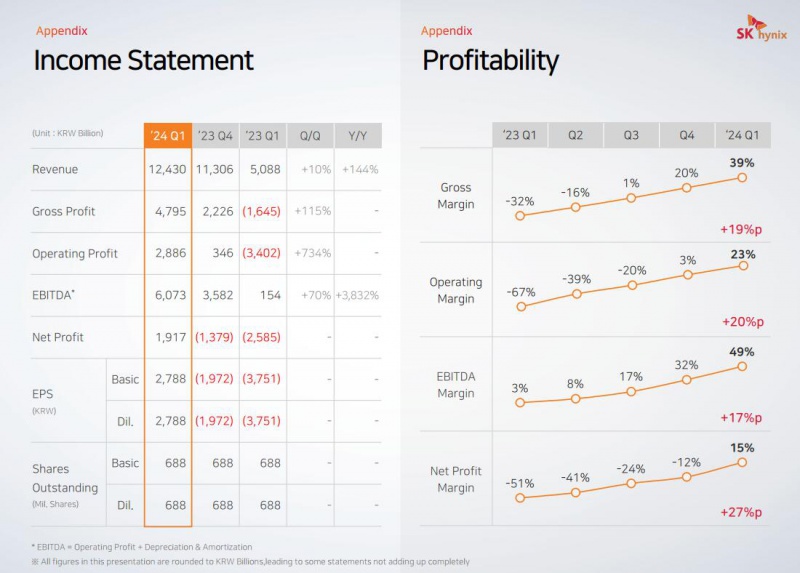 具体来说,SK海力士2024年一季度营收12,42万亿韩元(约90亿美元),创下历年同期最高,较去年同期暴涨144,3%,为2010年以来最快增速;营业利润达2,88万亿韩元(约20,9亿美元),远优于市场预期的1,8万亿韩元,并创下历史同月次高,与去年同期的亏损3,4万亿韩元相比,可谓是天壤之别。一季度营业利润率为23%,净利润率为15%,毛利率为39%,均达到了近期新高。 午夜影院在线观看。