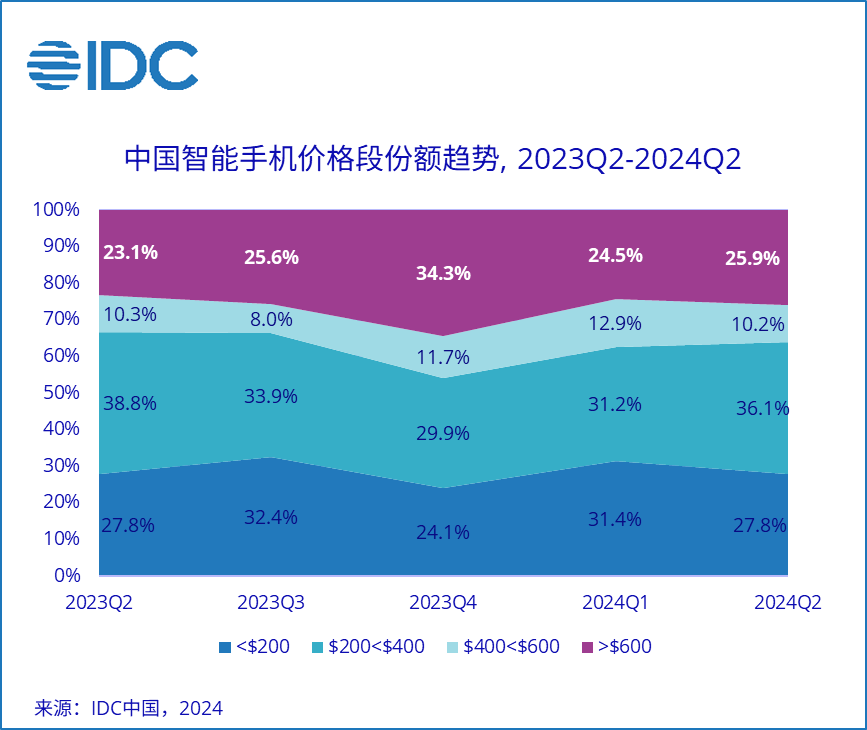 600美元以上高端市场份额继续增长