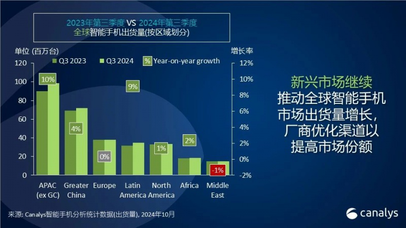 2024年第三季度,全球智能手机出货量同比增长5%,达到3,099亿台,这是自2021年以来表现最强劲的三季度。得益于各大智能手机品牌积极推出的具有较高性价比的新产品组合,以及更新周期和消费者信心增强的推动下,促使本季度出货量的增长。三星精简其入门级产品线,以5750万台出货量位居第一。苹果的iPhone 16系列在新兴市场表现强劲,且基础款和Pro款硬件差距缩,出货量创5450万台的历史记录,位居第二。小米受益于在核心市场的新产品库存策略,以4280万台出货量和14%的市场份额位居第三。OPPO和vivo分别以2860万和2720万台的出货量排名第四和五,在竞争激烈的亚太地区表现稳健。 午夜影院。