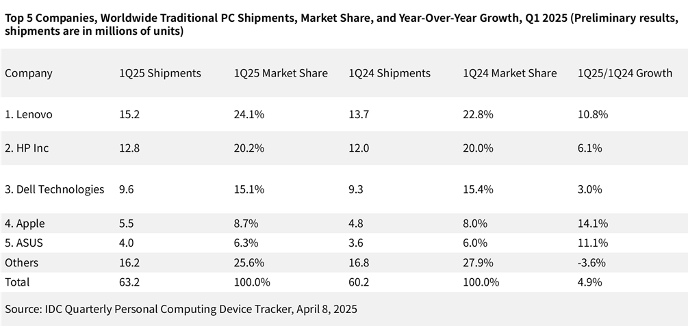 正如2025年第一季度的出货量所表明的那样 午夜影视资源,PC的大多数潜在需求因素(例如在Windows 10支持终止之前的安装基础升级以及对设备上AI的需求)仍然强劲,然而,围绕美国关税的不确定性和相关通胀压力以及全球经济衰退风险将对2025年未来几个季度对PC的需求产生负面影响, 。