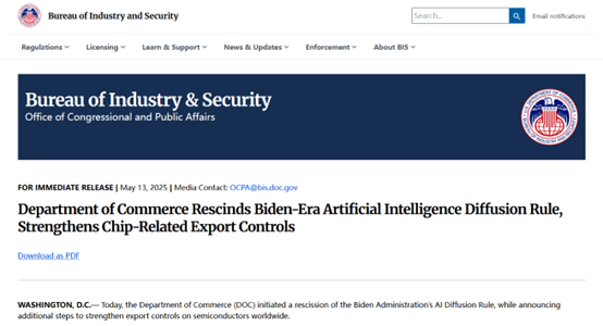 5月13日,美国商务部发布多项政策措施加强半导体出口管制,其中《对中华人民共和国先进计算集成电路适用通用禁令10(GP10)的指导意见》明确规定,在世界任何地方使用华为的昇腾芯片均违反美国出口管制规定,疑似针对华为昇腾910B 午夜影院,910C,910D三款芯片产品,美国商务部下属的工业与安全局(BIS)警告,企业若违反将面临执法行动,个人未经授权使用相关芯片,最高可面临20年监禁等严重刑事和行政处罚, 。
