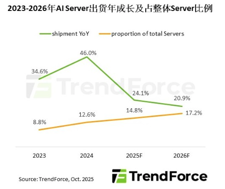 根据TrendForce集邦咨询最新AI Server产业分析,2026年因来自云端服务业者(CSP),主权云的需求持续稳健,对GPU,ASIC拉货动能将有所提升,加上AI推理应用蓬勃发展,预计全球AI Server出货量将年增20%以上,占整体Server比重上升至17% 午夜影院, 。