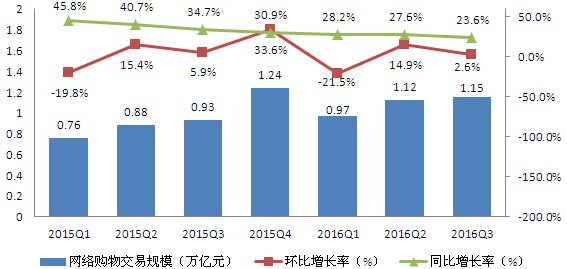 2015Q1-2016Q3中国网络购物市场交易规模(单位:万亿元,%) 午夜影院在线观看.