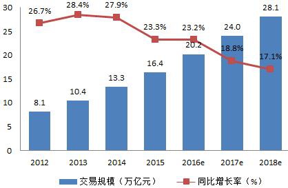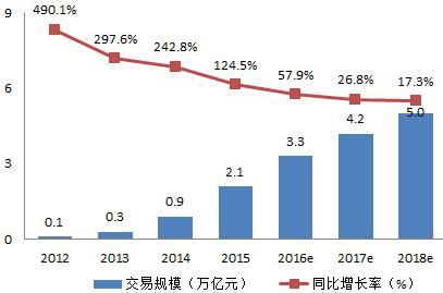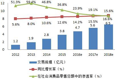 图表1: 2012-2018年中国电子商务市场交易规模(单位:万亿元 午夜影视资源,%) .