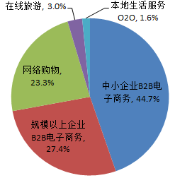 图表2:2016年中国电子商务市场细分行业构成(单位:%)