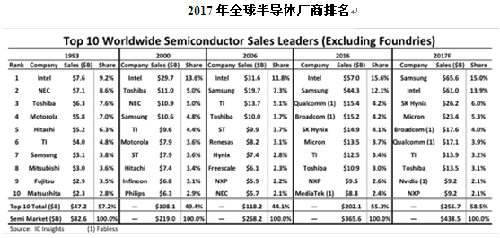 预计今年前十大半导体厂商排名依次为:三星,英特尔,海力士,美光 午夜影院在线观看,博通,高通,德州仪器,东芝,英伟达,恩智浦, 。