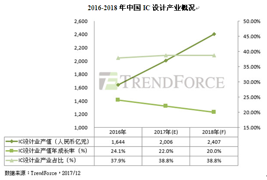 据集邦咨询最新研究报告指出 午夜影院,2017年中国IC设计业产值预估为达人民币2006亿元,年增率为22%,预估2018年产值有望突破人民币2400亿元,维持约20%的年增速, 。