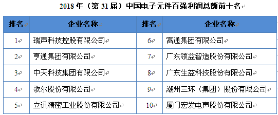 本届电子元件百强利润总额最高的10家企业中有9家是本届电子元件百强前十名 午夜高清播放,瑞声科技,亨通集团和中天科技是电子元件百强企业中利润最高的三家公司,值得一提的是潮州三环(集团)股份有限公司,尽管主营业务收入仅有31亿元,但却能在本届元件百强利润总额排名中排到第九名,可见企业盈利能力之强, 。