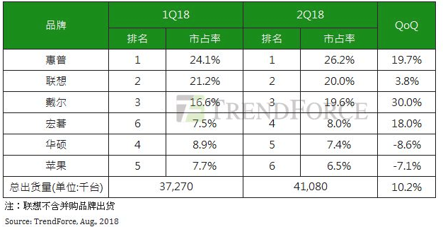 全球市场研究机构集邦咨询最新笔记本电脑出货报告显示,2018年第二季全球笔记本电脑出货为4,108万台,较第一季大增10 午夜影院,2%,年增率达2,8%,优于预期。展望第三季,受到商务标案需求热度延续以及即将到来的销售旺季备货拉动下,预估季增长约5~6%。 。