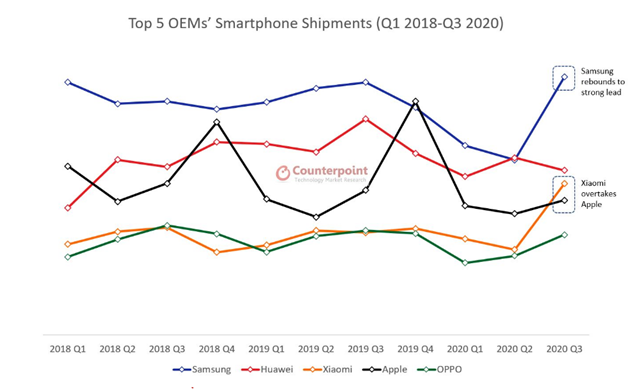 从厂商排名上看,三星再次夺冠,出货量为7980万台,环比增长47% 午夜高清播放,同比增长2%,创造了三年来的最高记录,Counterpoint指出在Note 20和A系列等新机型的推动下,三星成功在印度,西欧和拉美等市场上复苏, 。