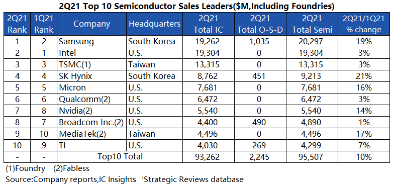 近日,半导体分析公司IC Insights发布8月最新报告显示,2021年第二季度 午夜影院,三星近三年来首次超越英特尔,重夺全球最大的半导体供应商宝座, 。