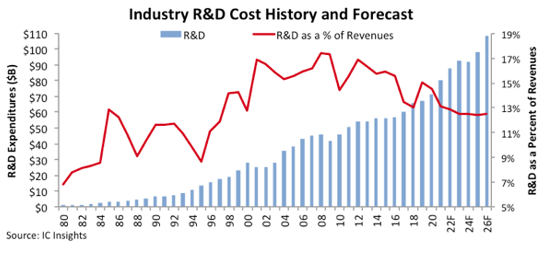 研究机构IC Insights数据显示,2021年全球半导体企业研发投入达到创纪录的714亿美元,2022年更有望达到805亿美元,预计增长9%, 午夜影院。