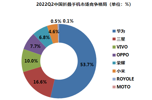 从市场份额来看,受益于多品牌入局折叠机阵营,2022年国内折叠屏手机市场格局持续优化,2022Q2华为市场份额达53,7%,超五成,虽同比下降19,5个百分点,但依旧领先国内折叠屏手机市场;三星市场份额16,6%,同比上升4,6个百分点;vivo、OPPO和荣耀的市场份额从无分别增至10%、7 深夜在线电影,7%和6,8%,vivo X Fold、OPPO Find N、Honor Magic V分别立功。 。