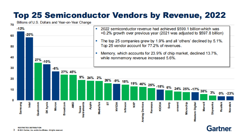 数据显示,2022年全球半导体收入达到5991亿美元,仅同比微幅增长0,2%,排名前25半导体厂商总收入同比增长1,9%,“其它”公司总收入则下降5,1%。 午夜影视资源。