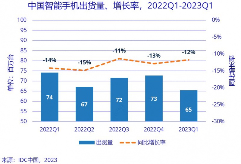 4月27日,市场研究机构IDC公布的最新数据显示,2023年第一季度,中国智能手机市场出货量约6,544万台,同比下降11,8%。2023年开年依然低迷,延续2022年以来每季度出货量同比下降幅度超10%。 午夜影院。