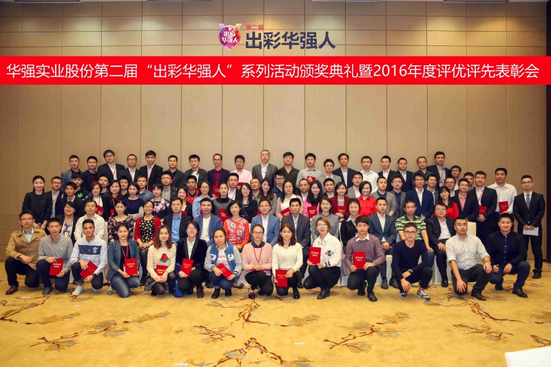 - 12月22日,由股份公司人力资源部,股份团总支以及股份工会联合主办的第二届出彩华强人活动颁奖典礼暨2016年度评优评先表彰会在华强广场酒店紫荆厅举行。股份公司领导、各投资企业领导、业务部门负责人出席典礼并为获奖员工颁奖。